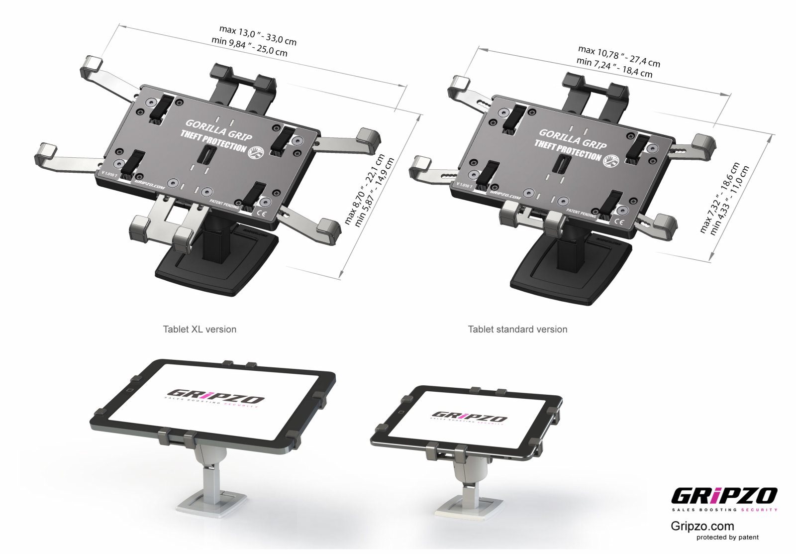 ¡La Gorilla Grip de Gripzo sirve para todos los dispositivos! Los brazoss ajustables permiten diferentes tamaños de tableta en todo momento.