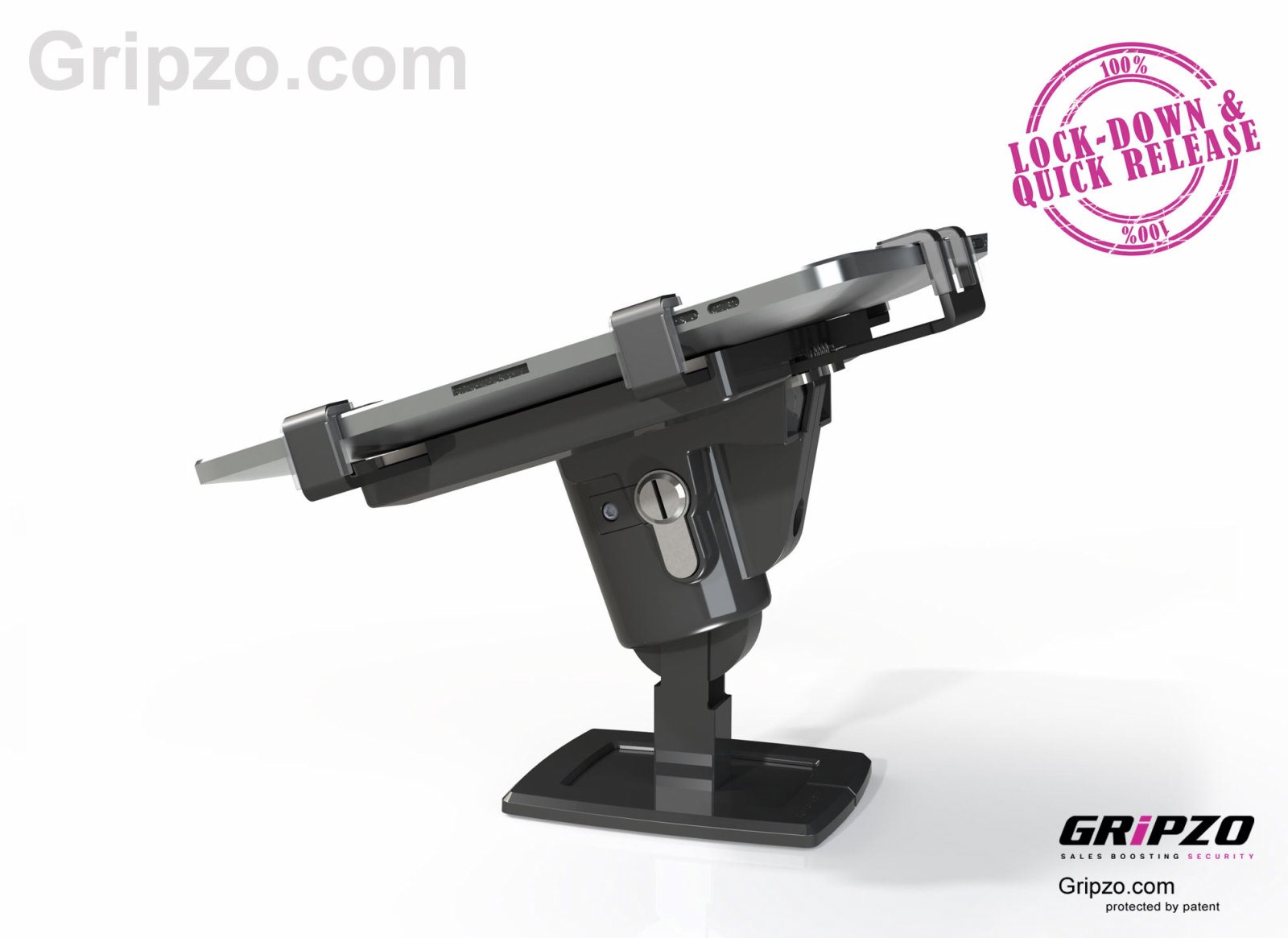 La tableta queda encerrada en el interior de la resistente sujeción de acero, otorgando protección contra el hurto. Se puede extraer el dispositivo con un único juego de llaves, ¡sin necesidad de electrónica, cables ni sensores!