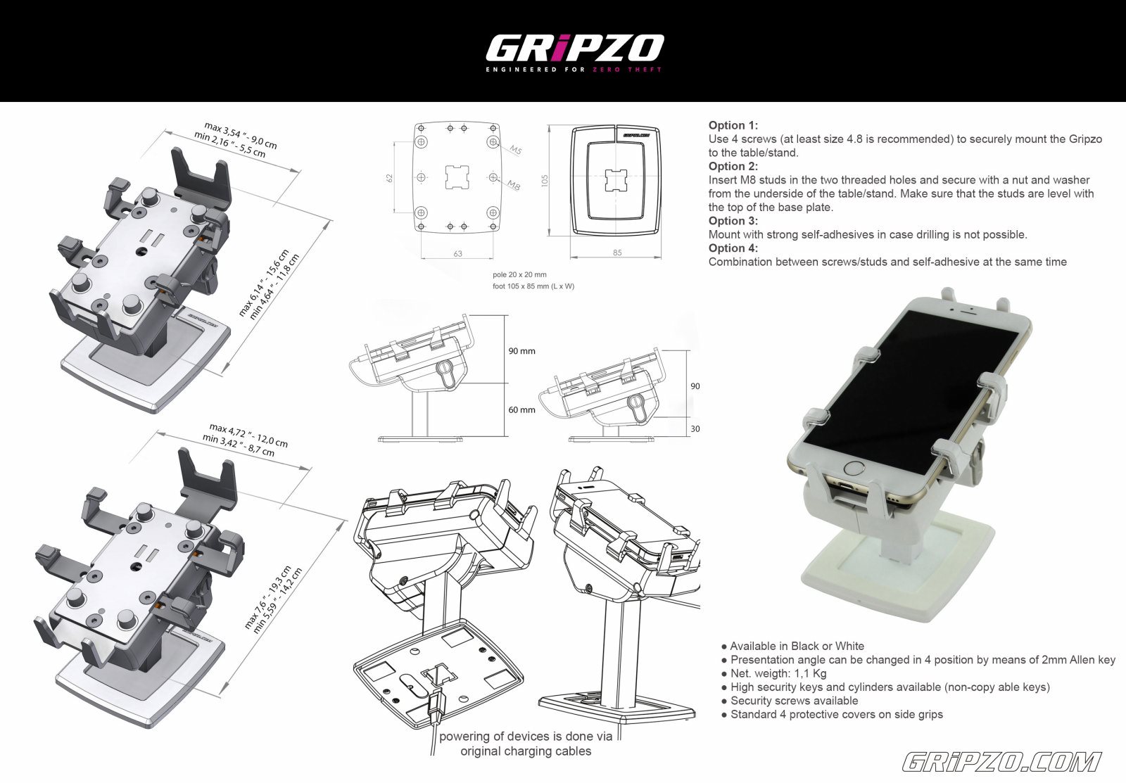 Cualquier tamaño de dispositivo estará bien empotrado gracias a las sujeciones de seguridad ajustables. Disponemos de unidades especiales de tamaño XL para las tablets mayores de 10.1” y para los teléfonos mayores de 6”.
